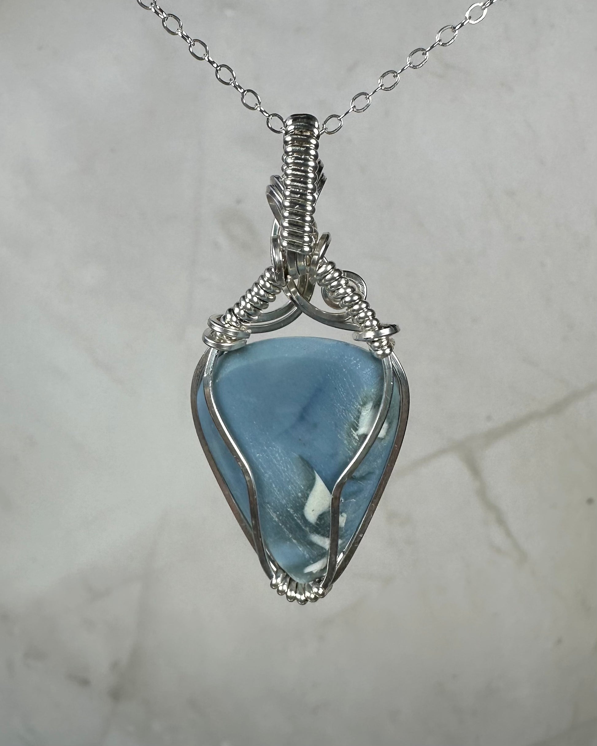 Blue Opal Pendant Wrapped in Sterling Silver Wire