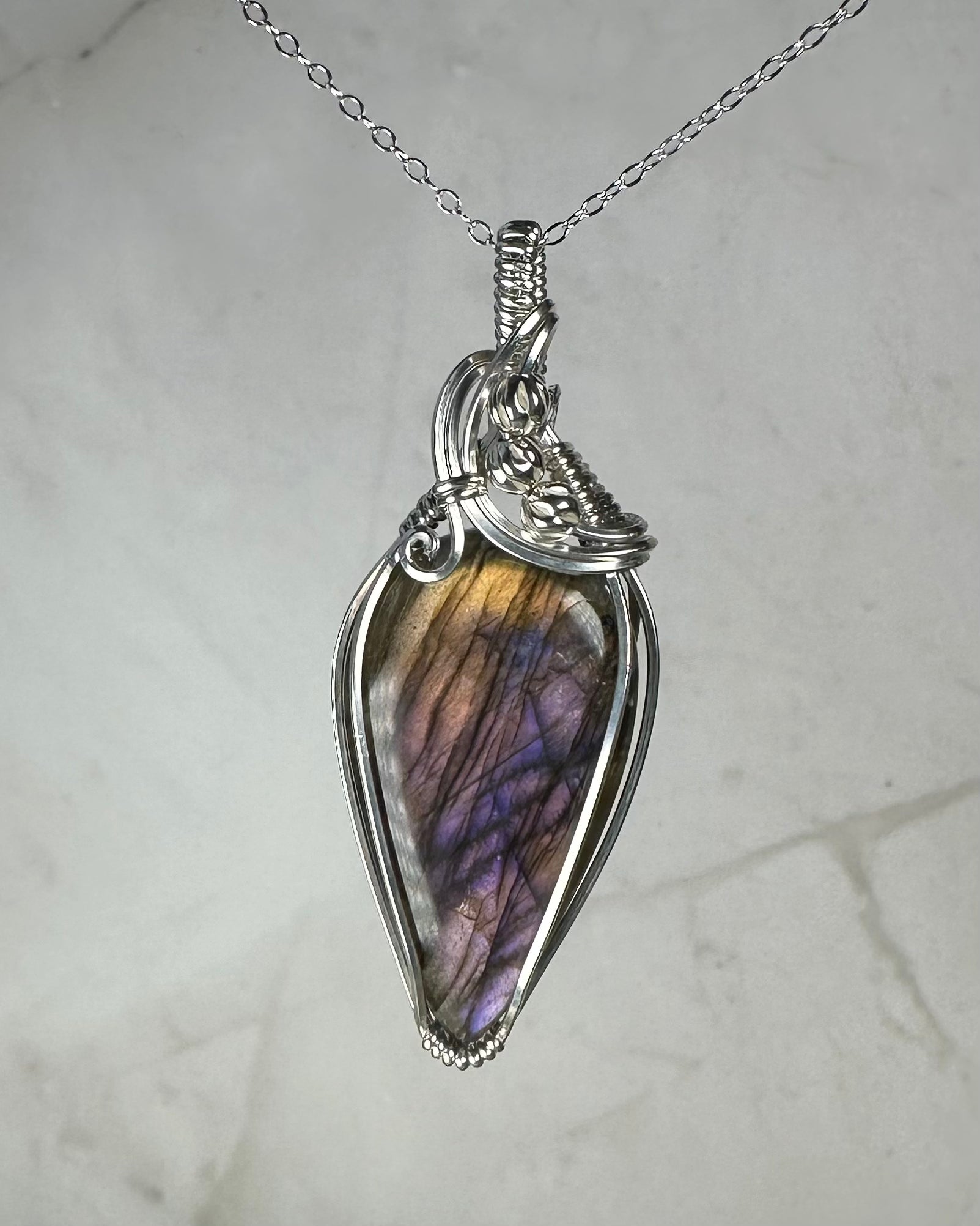 Flashy Purple and Gold Labradorite Pendant Wire-Wrapped in Sterling Silver