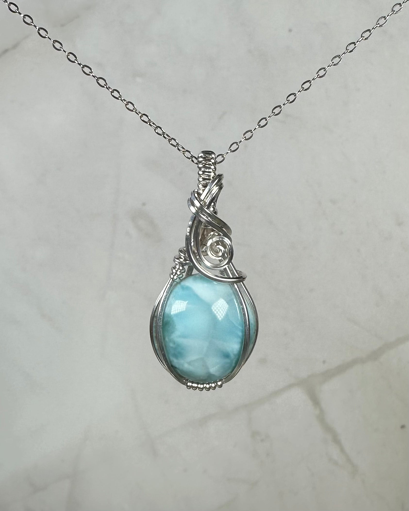 Larimar Pendant Wire-Wrapped in Sterling Silver
