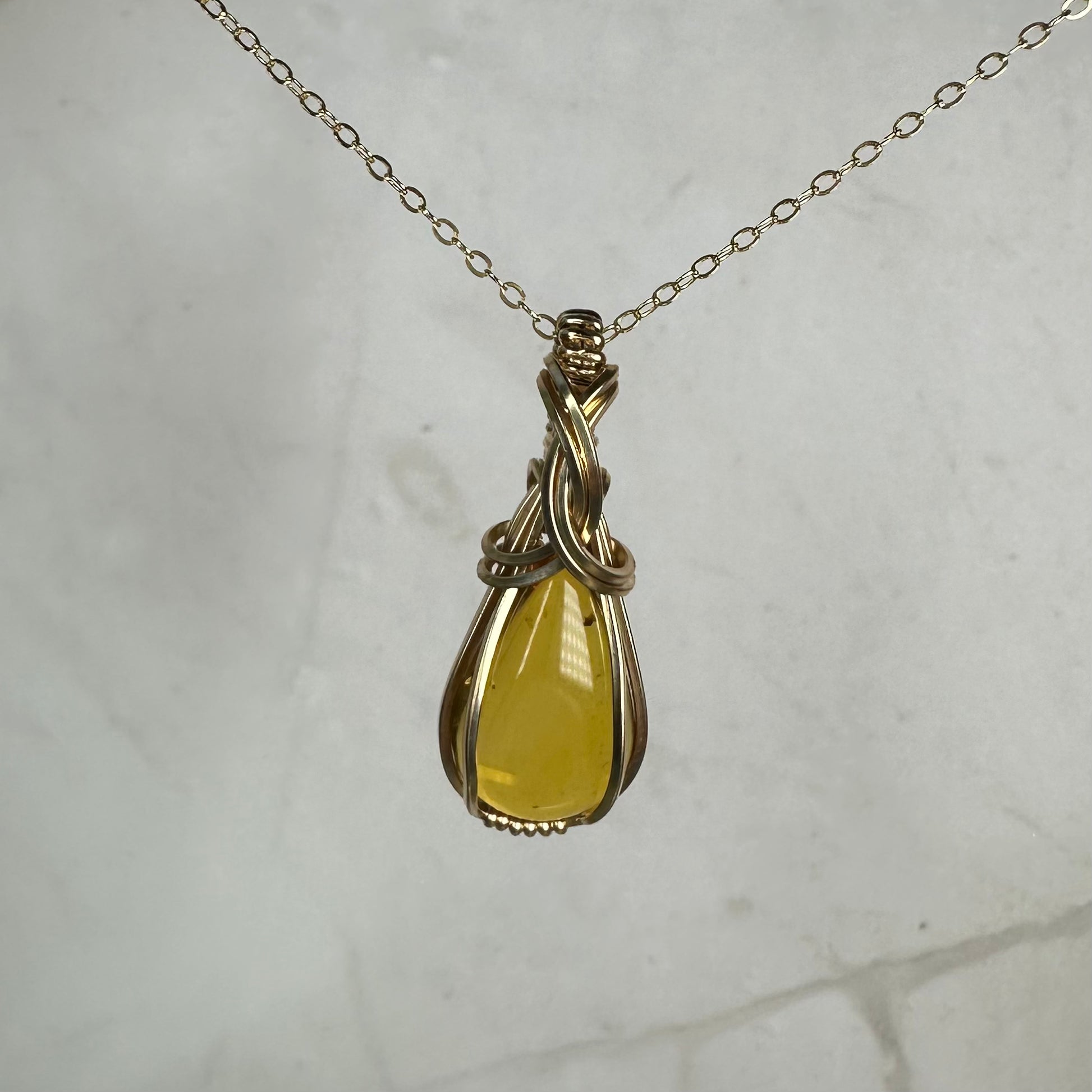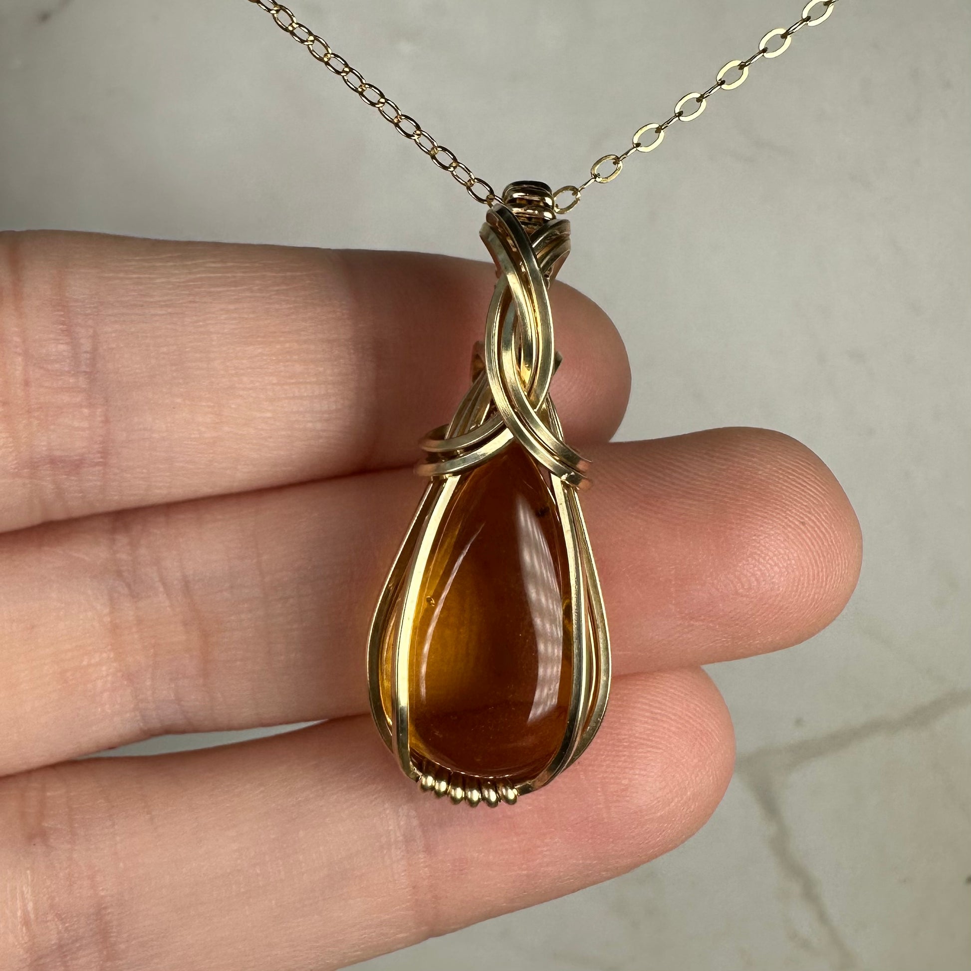 Mexican Amber Pendant Wire-Wrapped in 14k Goldfill