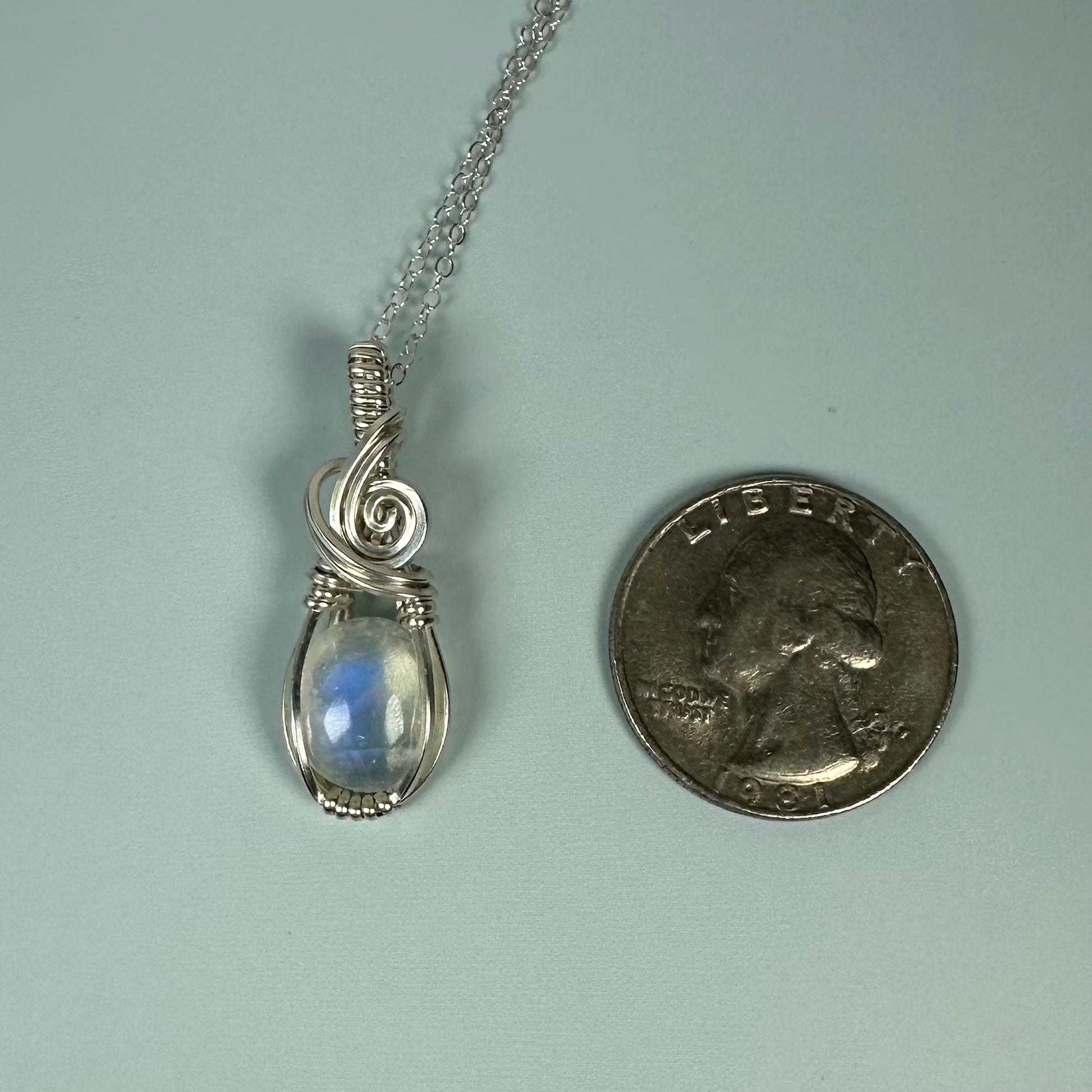 MATERIALS: Sterling silver wire, rainbow moonstone