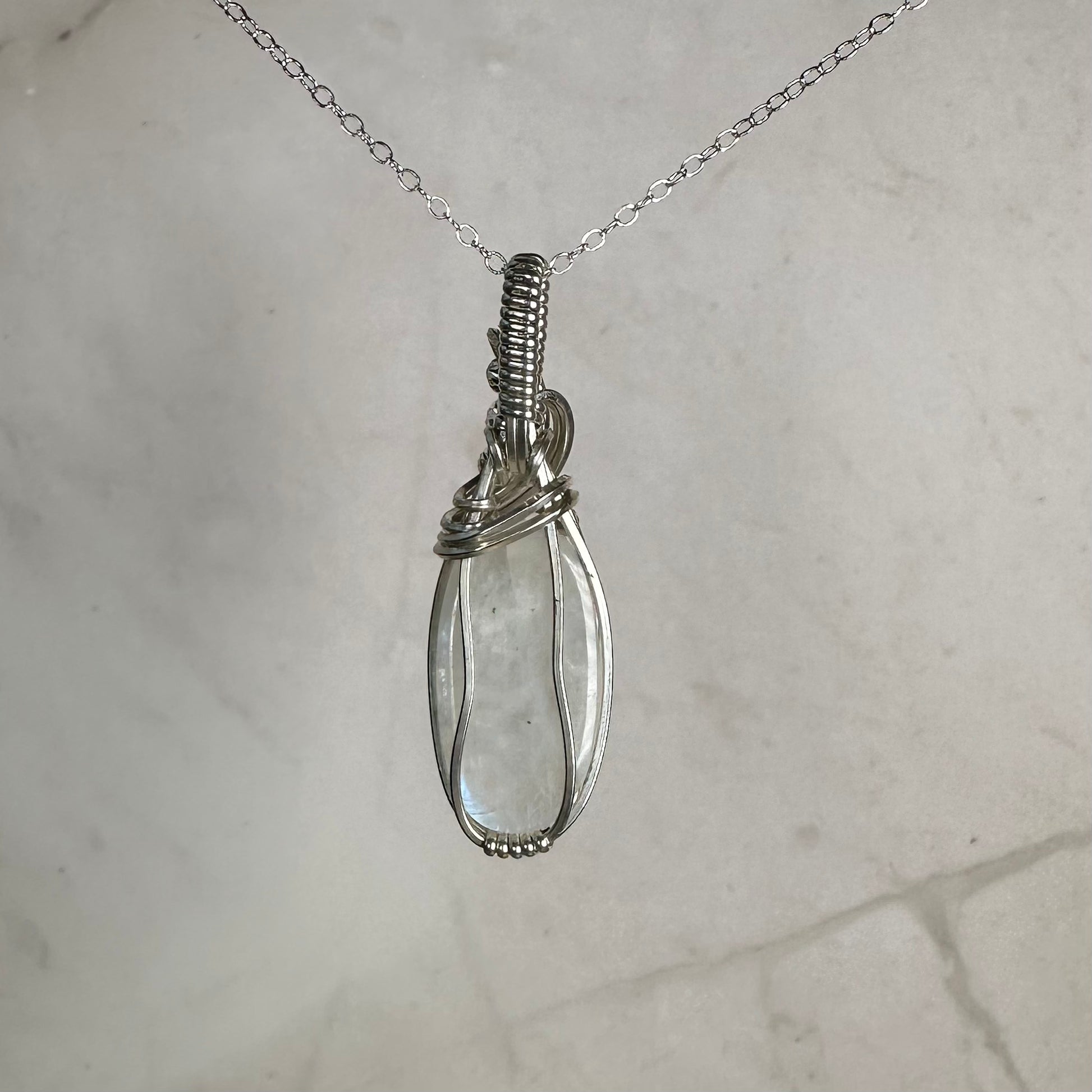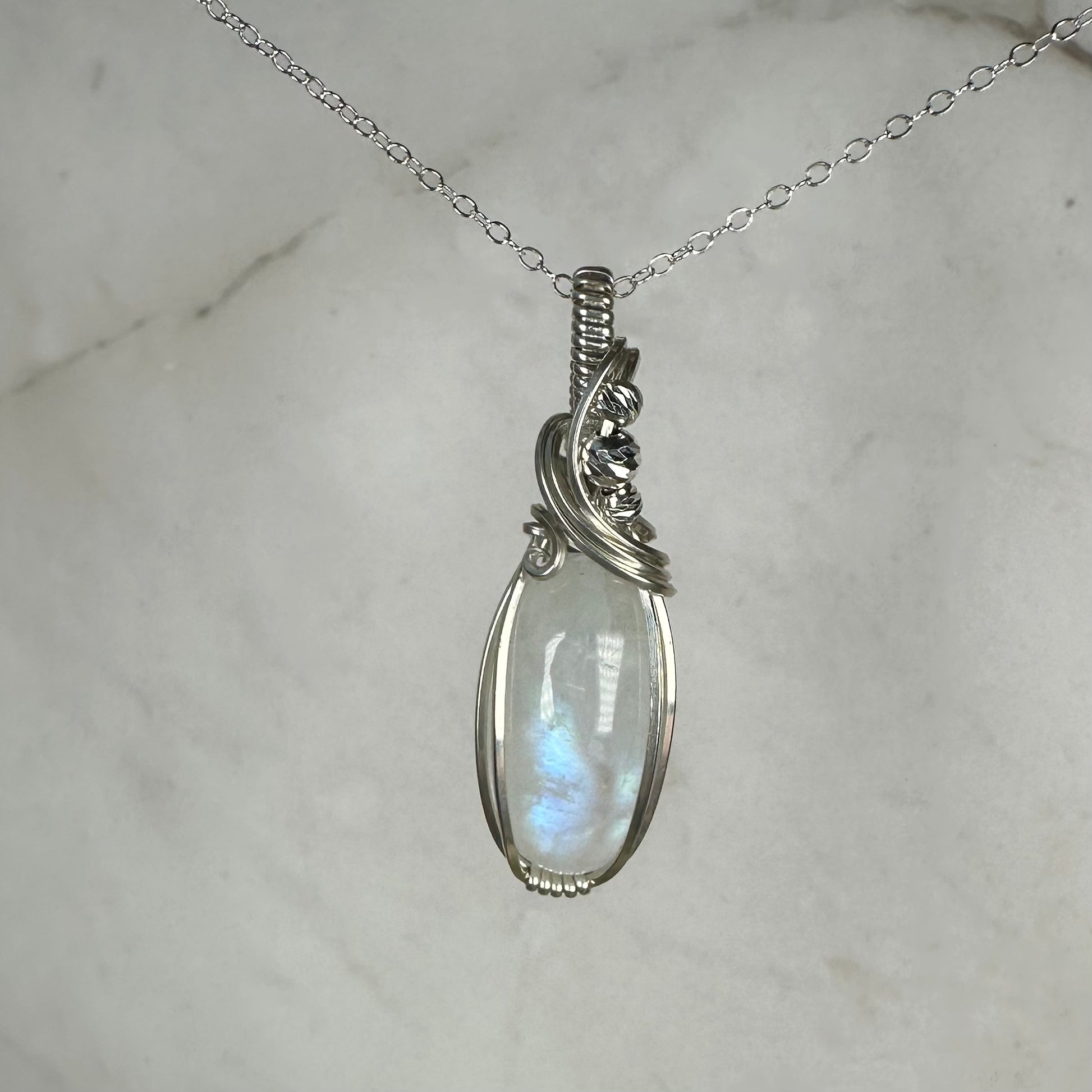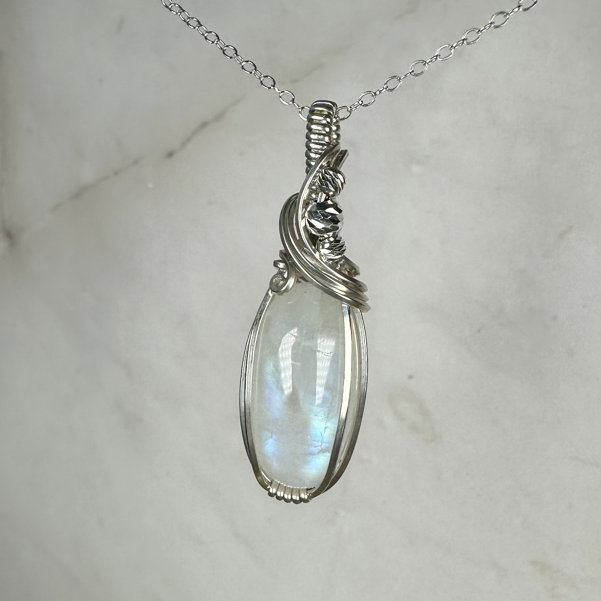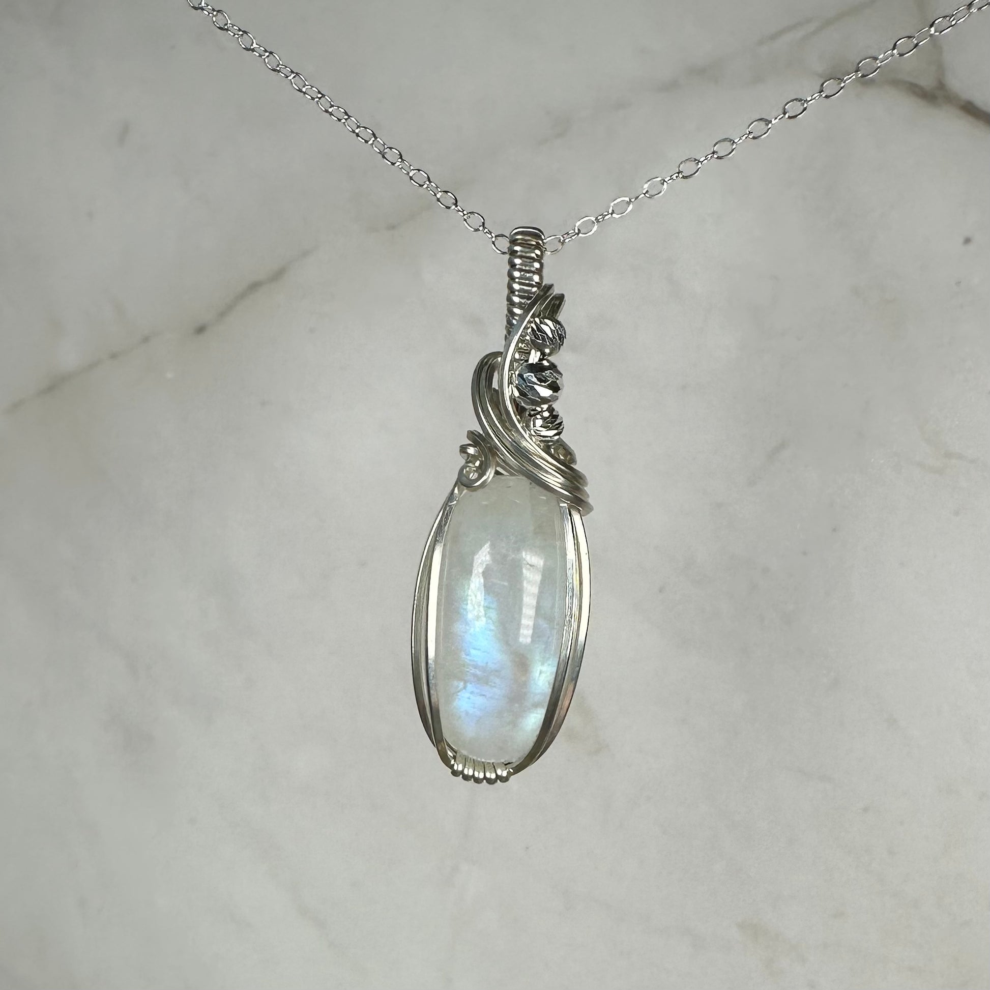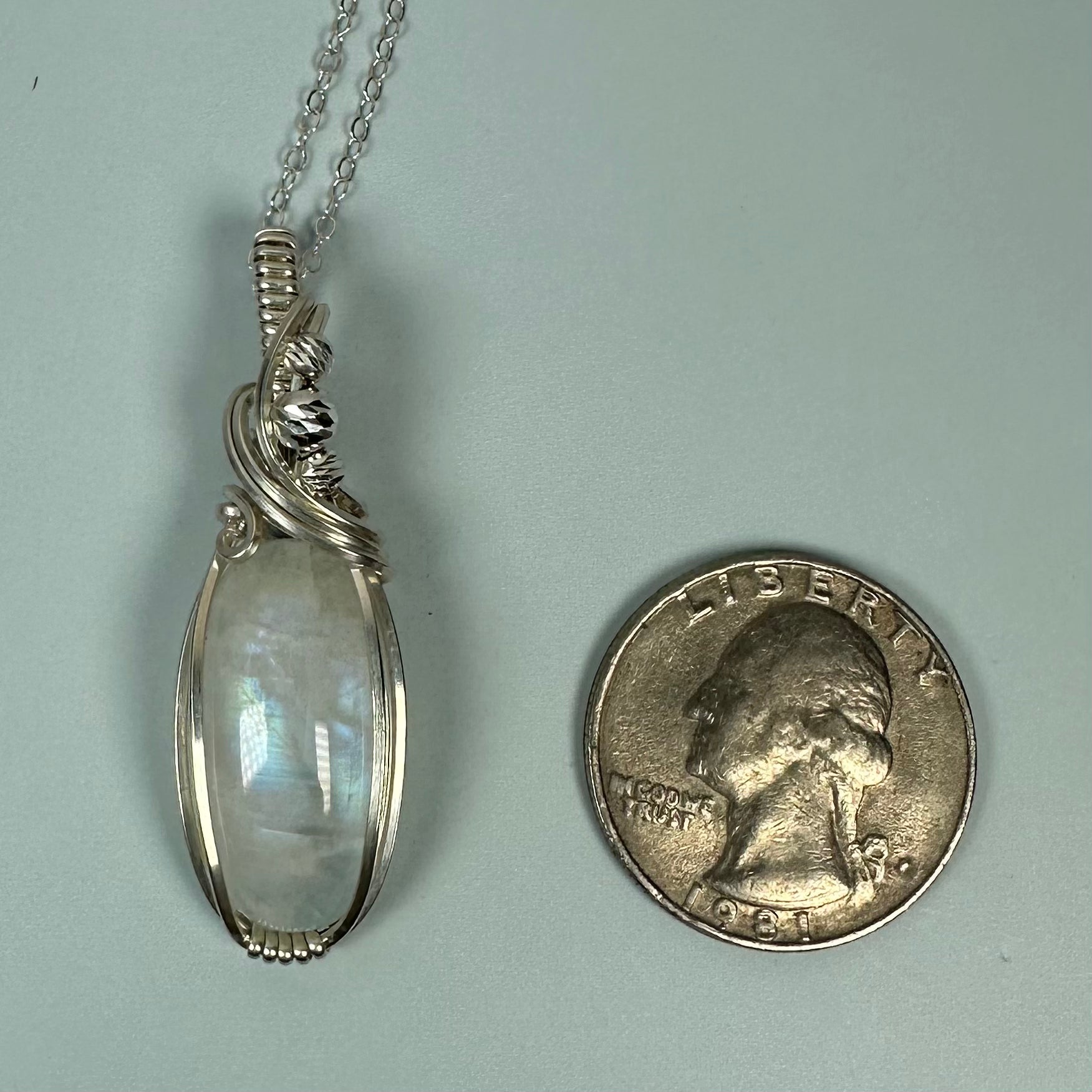 Sterling Silver Wire-Wrapped Rainbow Moonstone Pendant