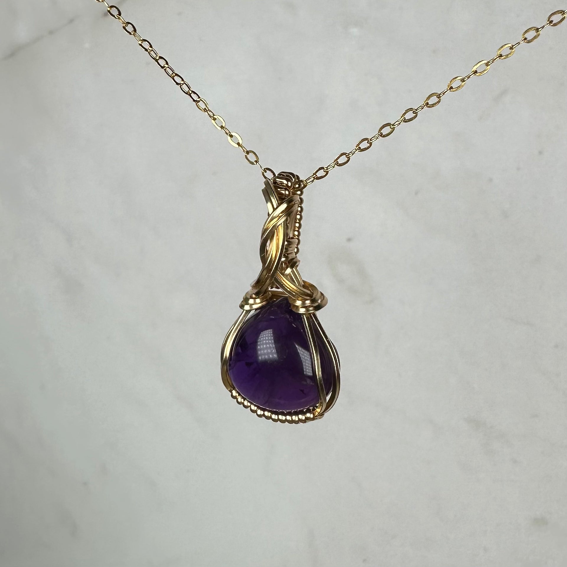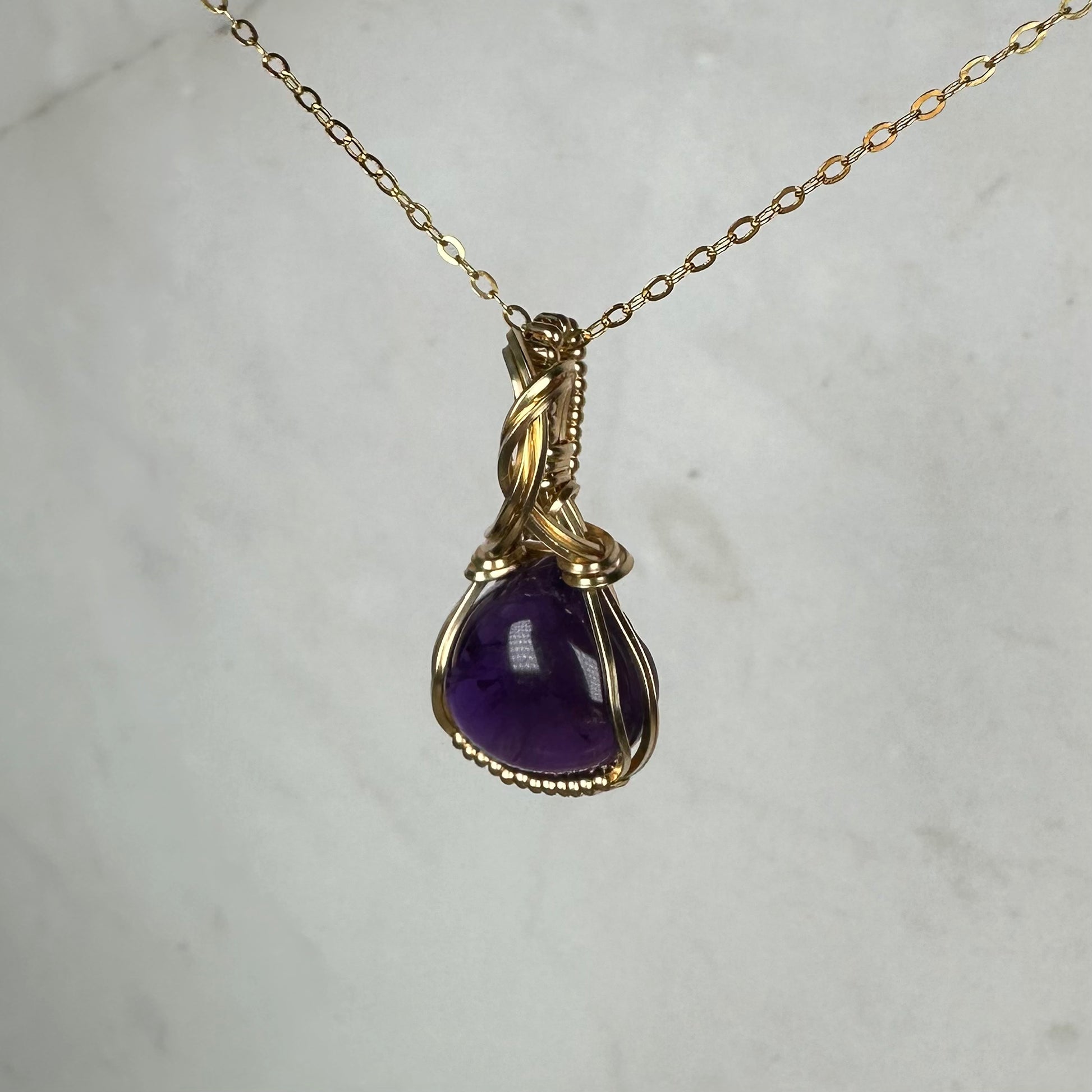 Wire-Wrapped Amethyst Pendant in 14k Goldfill