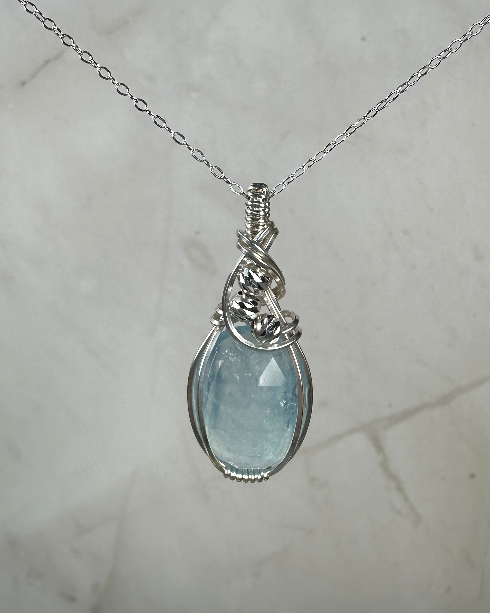 Wire-Wrapped Rosecut Aquamarine Pendant in Sterling Silver Wire