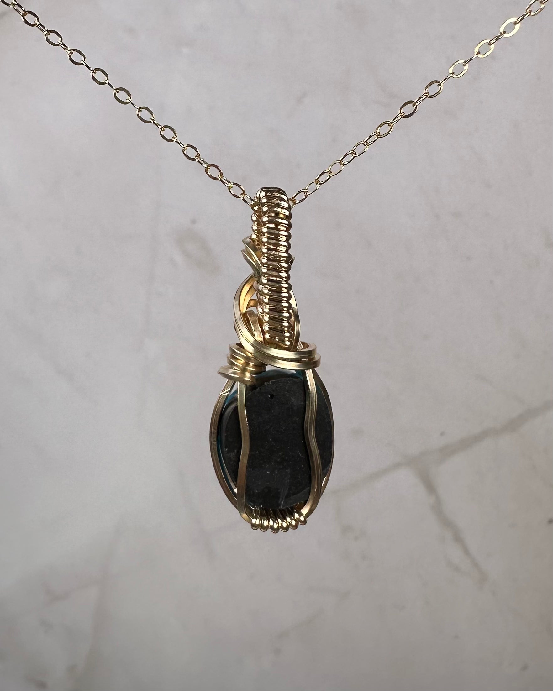Over time, gold-fill wire may show some wear. Gold-filled wire is a tube of gold that has been filled with a base metal, (generally pure jeweler's brass), and the two are securely bonded together with heat and pressure. Each purchase from my shop comes with a complimentary yellow polishing cloth, which you may use at any time to polish your piece. (The cloth will still work even as it gets darker; do not wash the polishing cloth.) When polishing, try to avoid the stone so as not to scratch it. Please do not wear in the shower or pool. There may be small imperfections on the stone. I have done my best to photograph it fully.